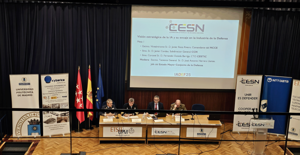 Recientemente tuve el placer de asistir a un evento que reunió a expertos civiles y militares para debatir los retos de la inteligencia artificial (IA) en defensa, seguridad y entornos hospitalarios, hablo de IADEF 25, celebrado en la Universidad Politécnica de Madrid y organizado por el CESN (Cooperación Estratégica de Seguridad Nacional), reunió a expertos civiles y militares para analizar el papel de la inteligencia artificial en la defensa y la seguridad nacional. El encuentro subrayó la importancia de una IA segura, ética y soberana, impulsada por la colaboración entre academia, industria y Fuerzas Armadas.